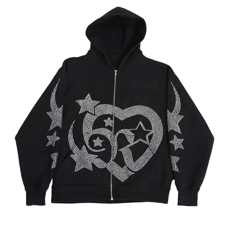 Vêtements personnalisés avec logo de marque privée avec strass en diamant Sweat-shirt à capuche avec impression de lettres Sweat à capuche avec strass pour femmes et hommes