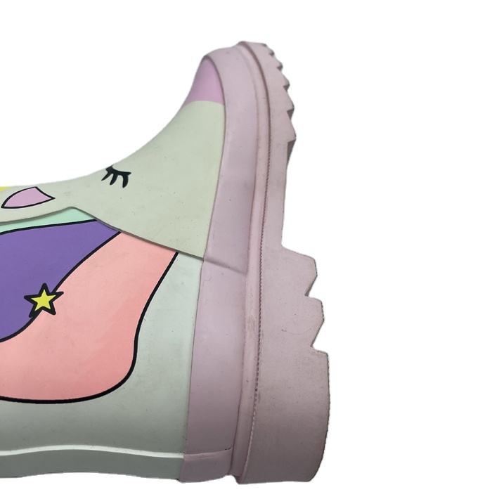 Mini bottes de pluie en caoutchouc et couleur rose pour enfants, personnages de dessins animés avec licorne, taille personnalisée, avec lacets au dos,