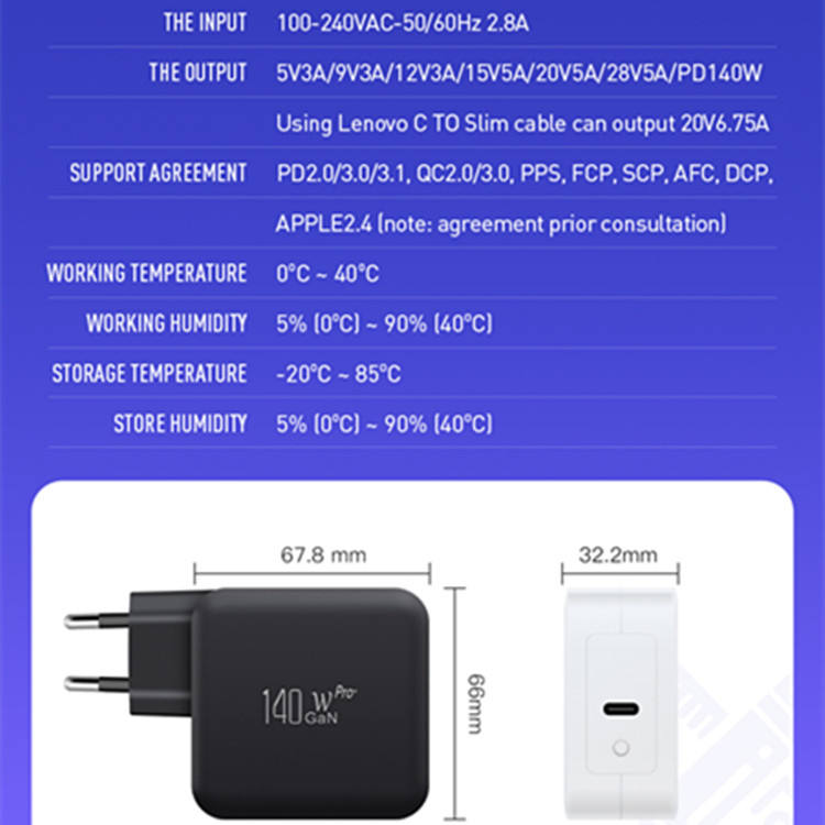 Chargeur rapide 140W avec technologie GaN, prise EU, USB-C PD3.1, type C, une seule sortie, pour Apple iPhone, Macbook, téléphone, ordinateur portable, marque privée