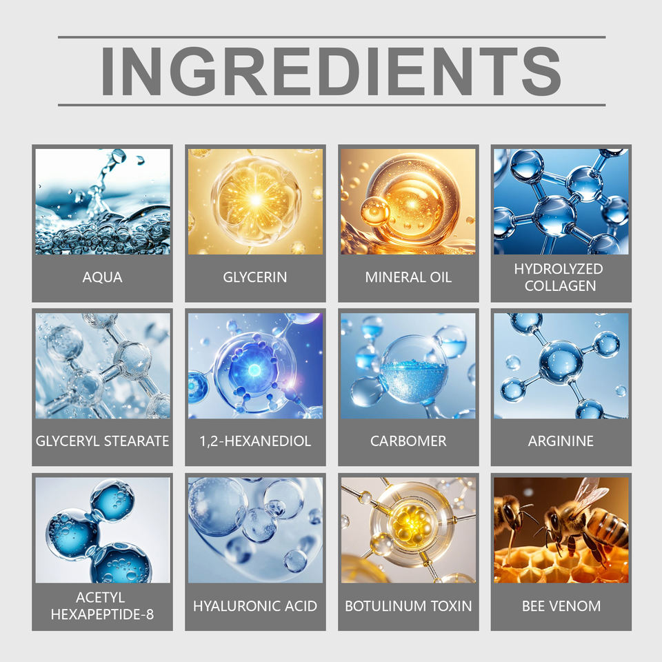 Acide hyaluronique, Collagène, bee venomIngrédient principal