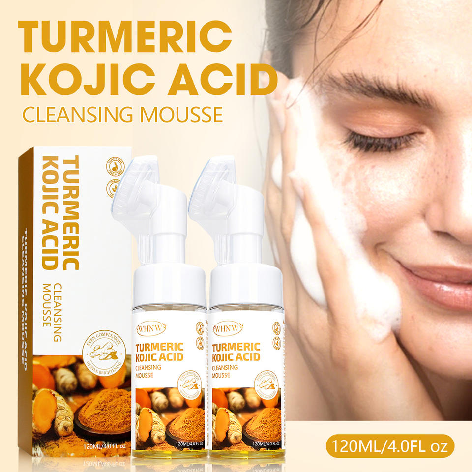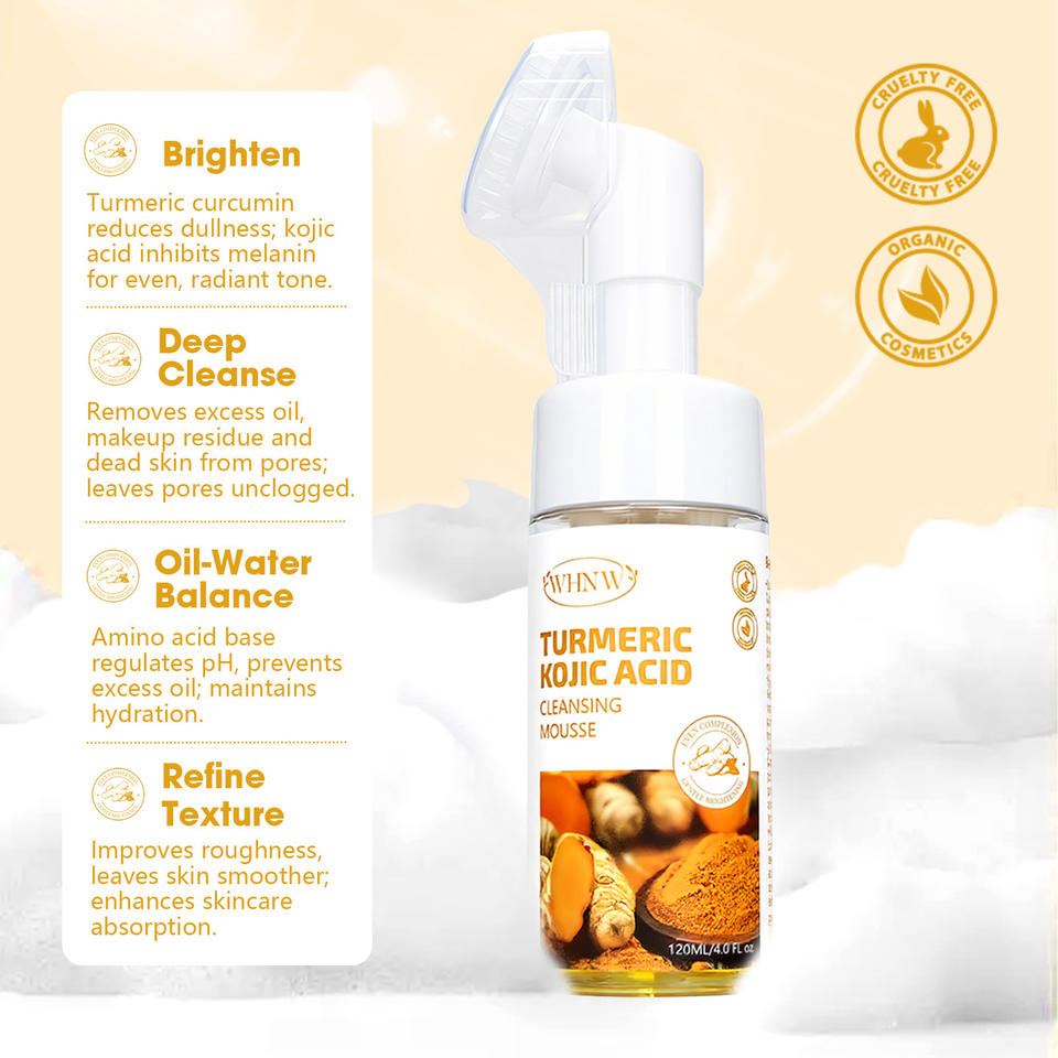 Mousse nettoyante pour le visage en marque propre, nettoyage en profondeur, aide à équilibrer l'huile et l'eau de la peau, éclaircit les taches, curcuma, acide kojique