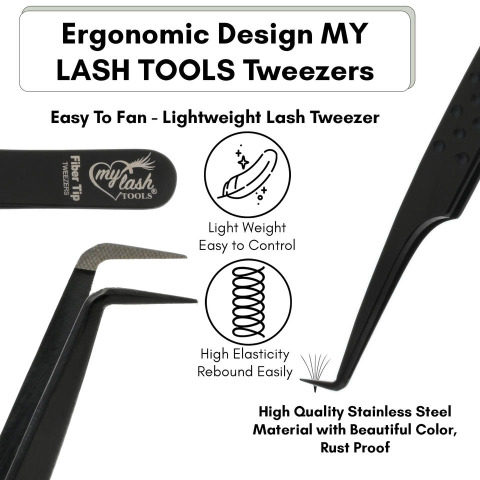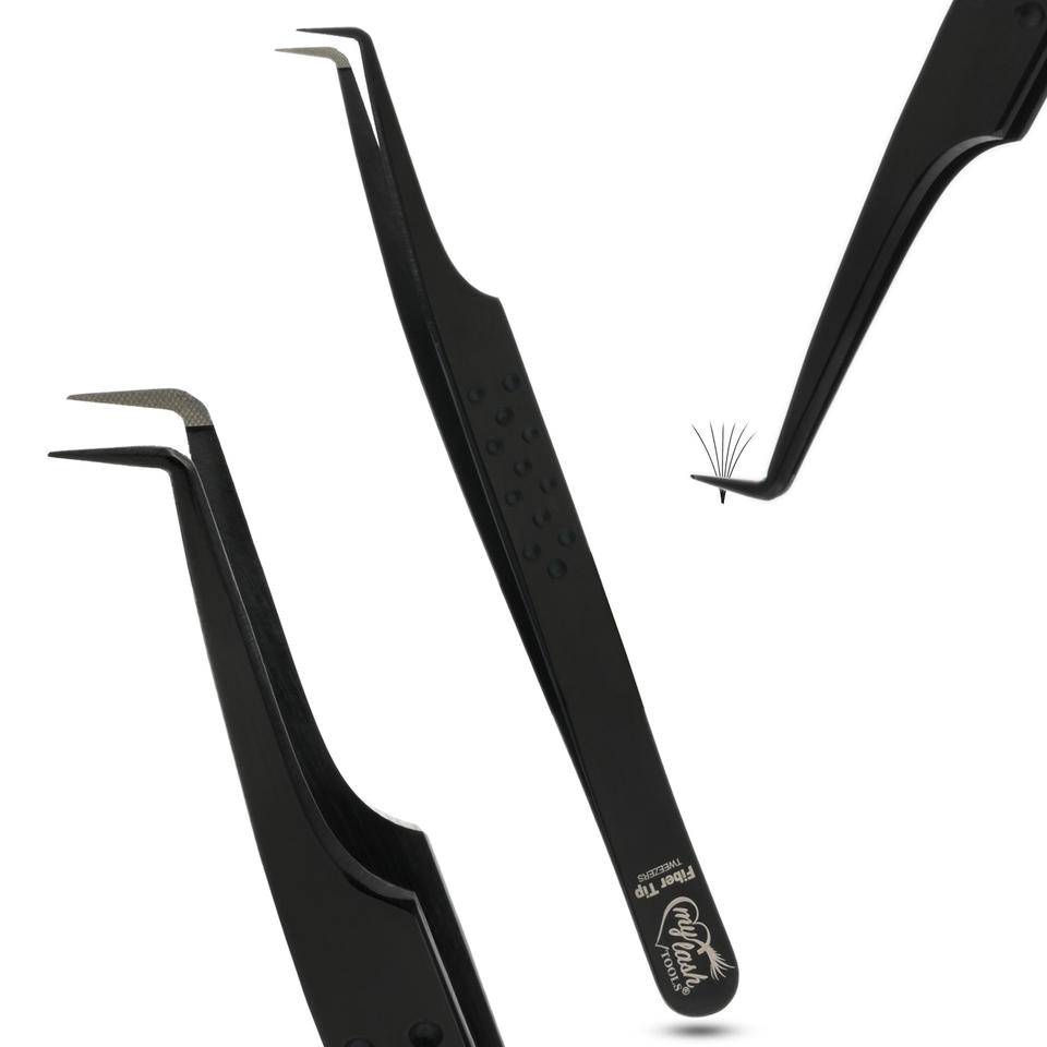 Pince à épiler professionnelle pour extensions de cils à pointe en fibre, courbée et droite, à pointe fine, à nano-pointe à 90 degrés, marque privée