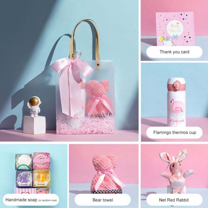 Savon artisanal en forme de flamant rose, serviette en forme d'ours, lapin tendance avec sac transparent – Idéal pour cadeau d'enfant ou de mariage