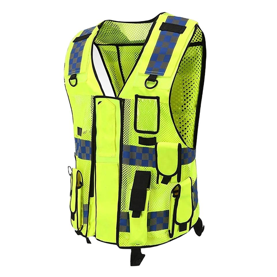 Gilet de travail antistatique en maille fluorescente de polyester à marque privée, certifié CE, avec bande noire de haute qualité.