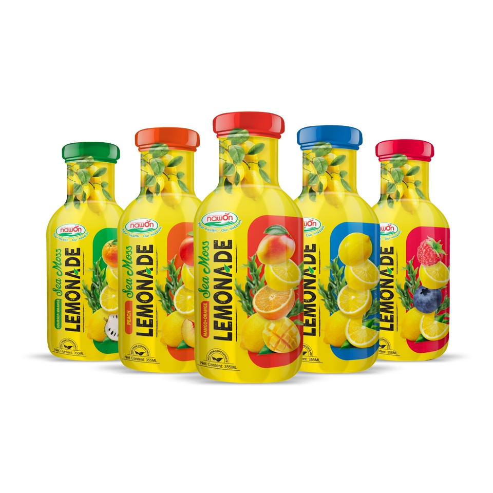 Fabricant de boissons fonctionnelles en marque privée, jus de limonade à l'algue marine, 355 ml, boissons gazeuses en bouteille, usine au Vietnam, service OEM/ODM