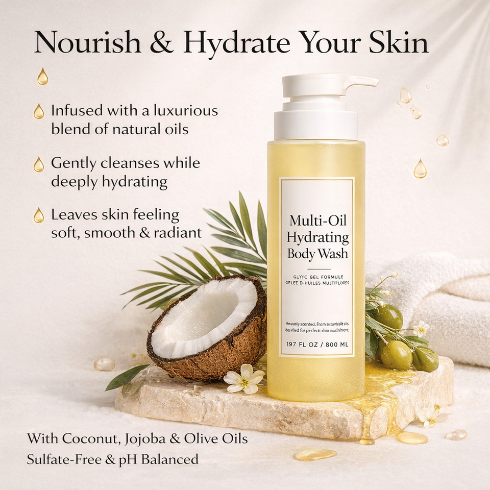 Nettoyant corporel hydratant multi-huiles à label privé, nettoyant doux