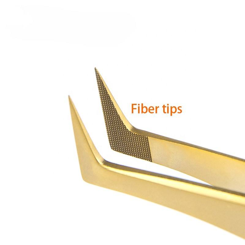 Pince à cils en forme de L en or de marque privée en acier inoxydable avec pointe en fibre lisse conception de poignée unie en gros