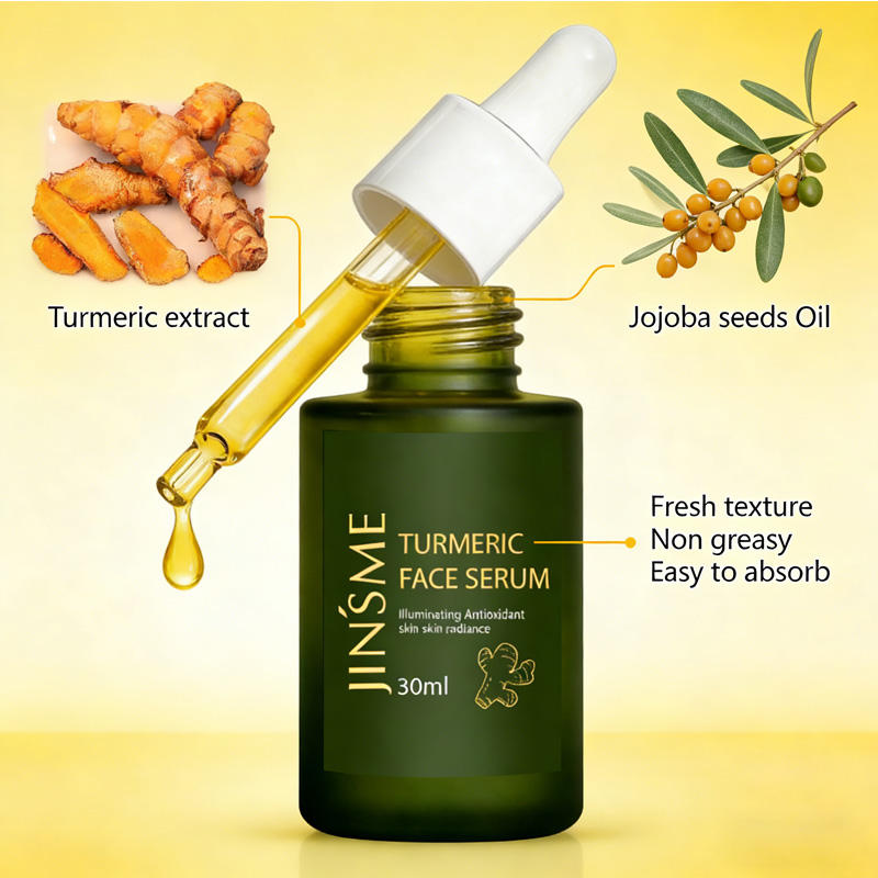 Ingrédient principal:Extrait de curcuma, huile de graines de jojoba, glycérine, acide hyaluronique, vitamine C