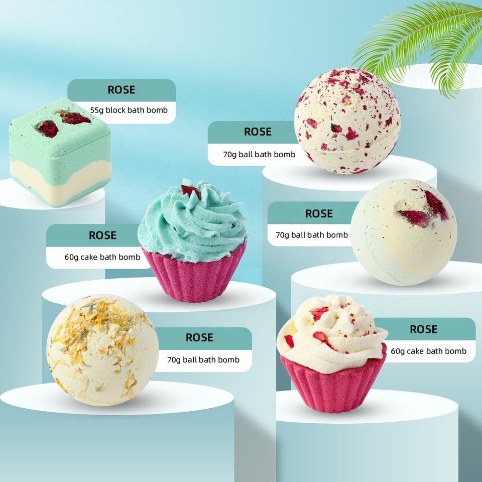Coffret de bombe de bain de roses séchées, fait à la main, bio, spa, bubble vegan, relax, huile essentielle, cupcake, luxe