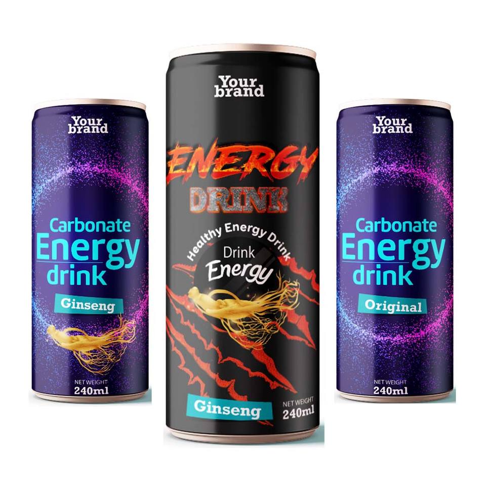 Boisson Énergisante Naturelle au Ginseng et Taurine, Sans Sucre, Faible en Glucides et en Matières Grasses, Saveur Fruitée, Marque Blanche, pour une Performance Optimale