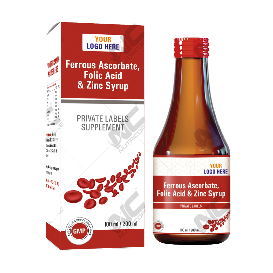 Sirop de fer à base de plantes en marque privée avec acide folique, certifié GMP, origine indienne, durée de conservation de 18 mois - Achat en gros