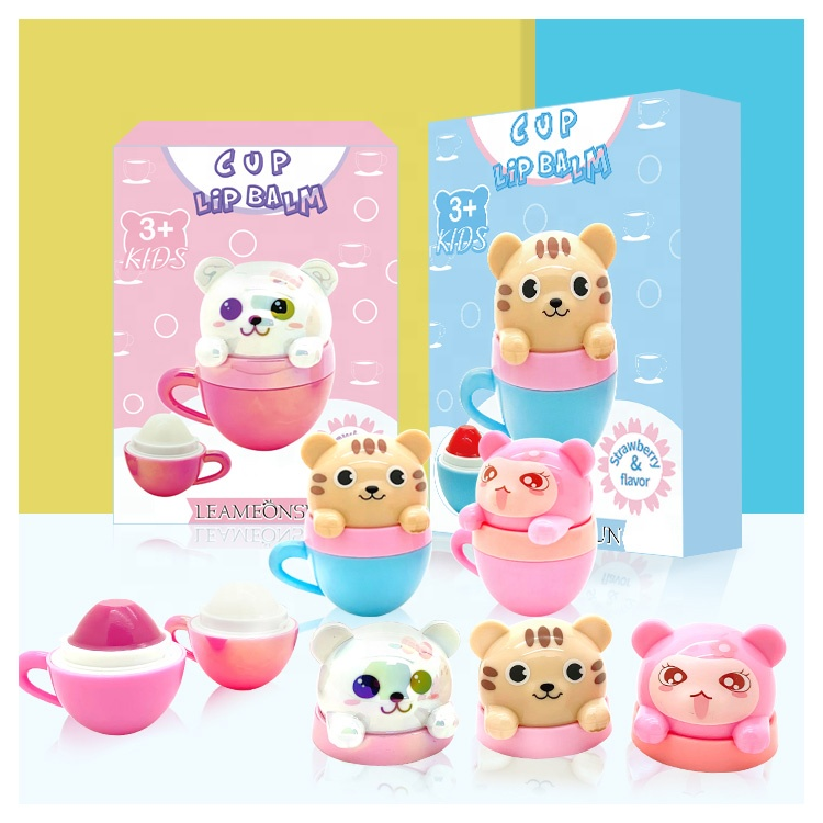 Baume à lèvres hydratant en cire d'abeille pour enfants, marque privée, en tubes, gel, en ABS, vente en gros, nouveau, saveur fruitée, forme tasse, mignon