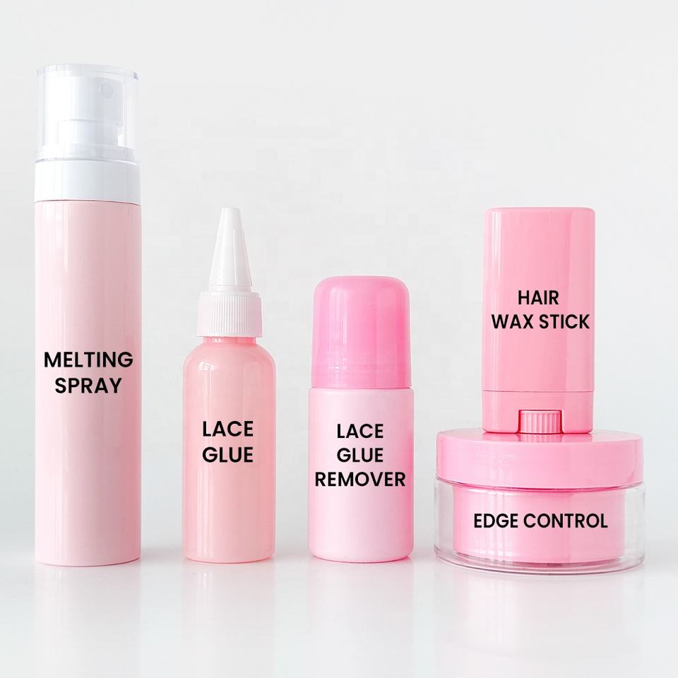 Une marque privée dentelle teinte bâton de cire bande de fusion Spray extrême maintien de l'eau dentelle détachant cheveux peigne à cheveux kit d'installation par paquet