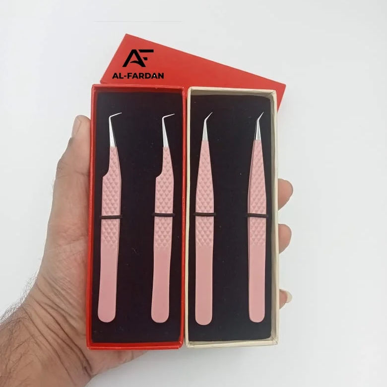 Pince à cils de volume rose bébé mat de marque privée pince à épiler d'extension de cils en acier inoxydable à poignée diamantée 90 à 45 degrés