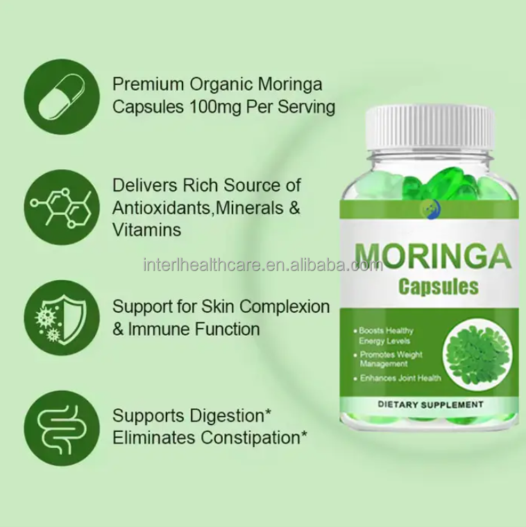 Marque privée Extrait De Feuille De Moringa Compléments Alimentaires Perte De Poids Capsules Softgel De Moringa À Base De Plantes