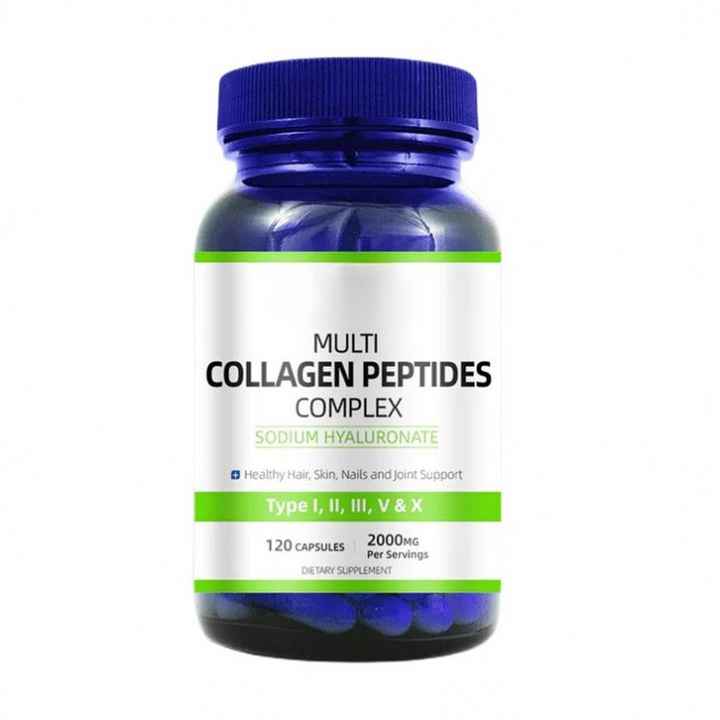 Complément alimentaire multi-collagène en marque privée, soutient les articulations, les cheveux et les ongles, certifié Halal/Kosher, poudre de peptides 2000 mg