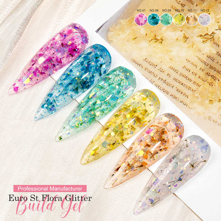 Gel de Construction Professionnel pour Ongles à Marque Blanche, Nouveau, Meilleure Vente, Gel de Construction Flora Glitter pour Ongles