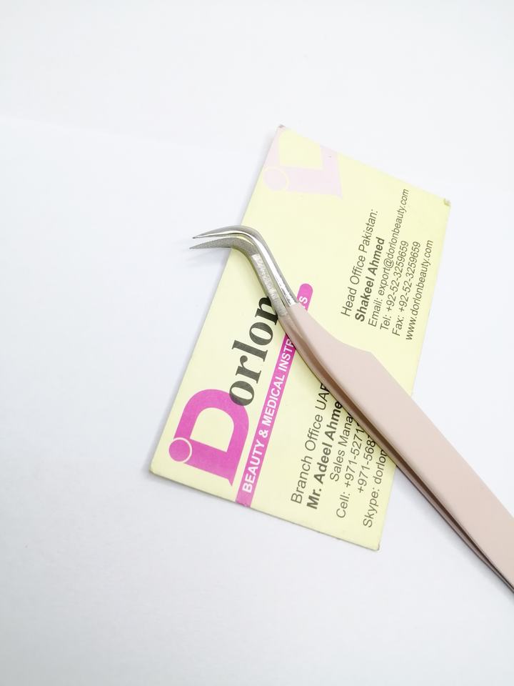 Pincettes à cils à pointe de fibre de couleur rose beige mat
