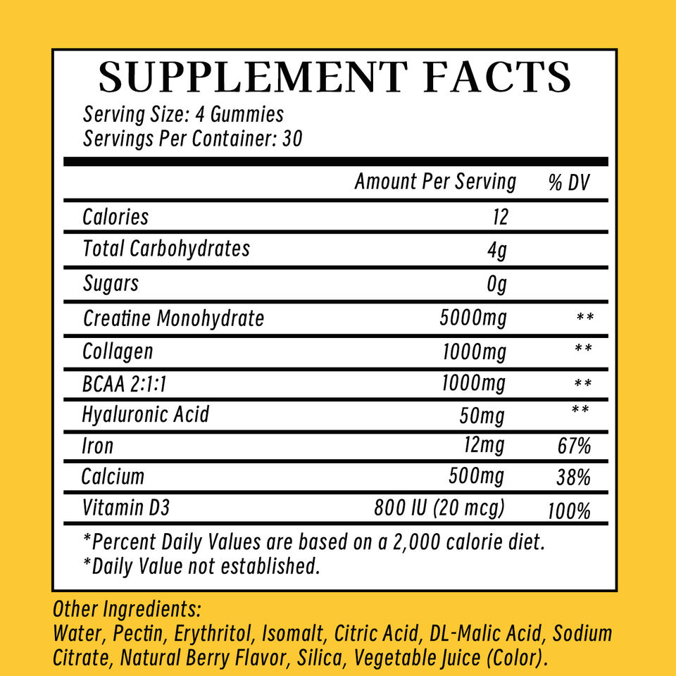 Ingrédient principal:Monohydrate de créatine, Collagène, BCAA, Calcium, Vitamine D3