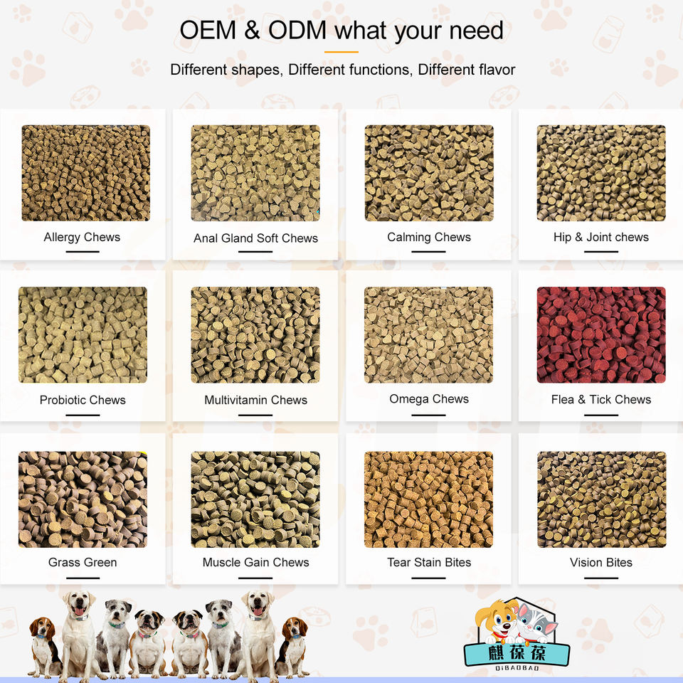 Compléments alimentaires pour chiens sous marque privée OEM HMB : Gommes à mâcher riches en protéines pour la croissance musculaire et la prise de poids chez les chiens.