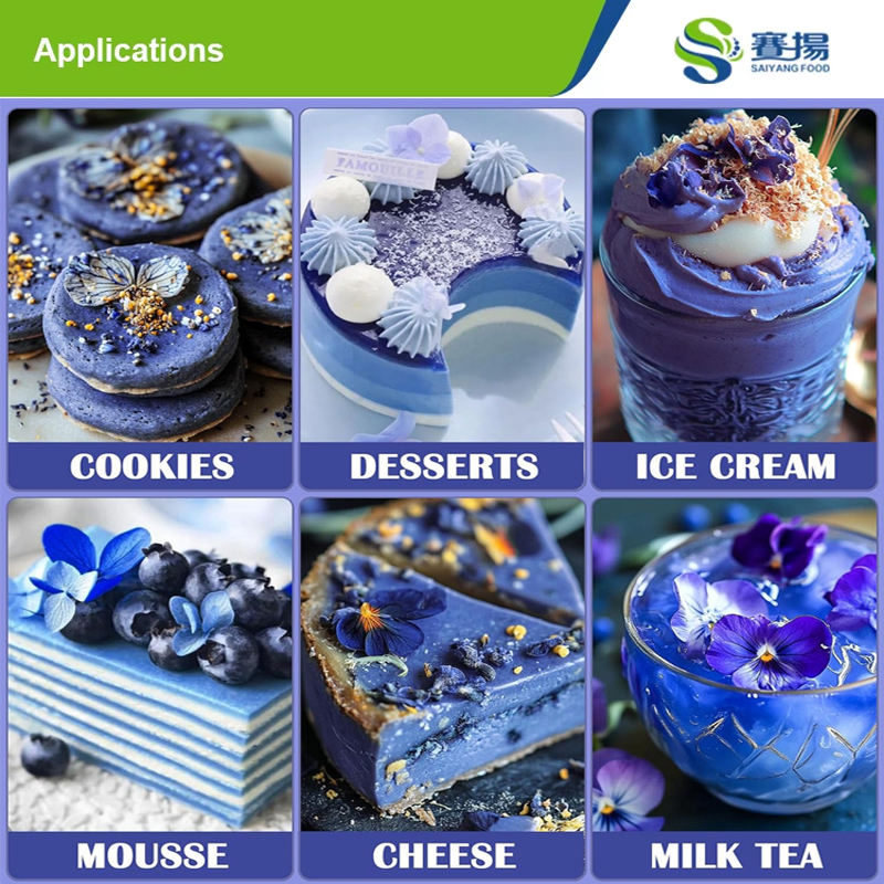 Marque privée OEM/ODM Extrait de pois papillon Poudre de fleur bleue Nature pure Colorant Poudre de thé matcha bleu 50g-200/sac