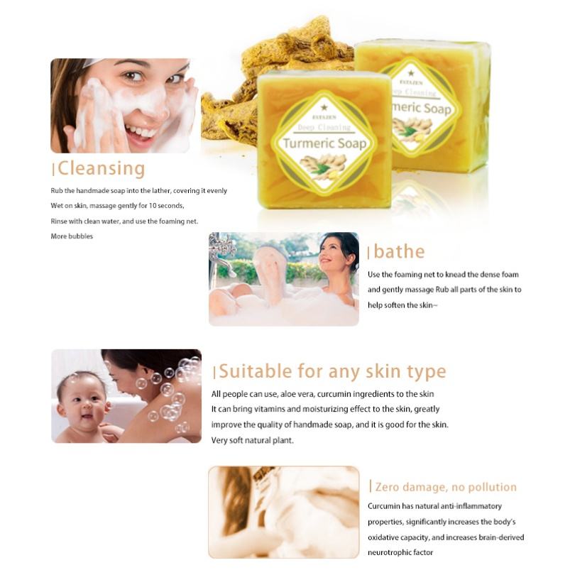 Marque privée OEM Barre de savon au curcuma bio naturel blanchissant pour le blanchiment de la peau Barre de savon anti-acné faite à la main pour le bain du visage Savon à l'acide kojique 110g