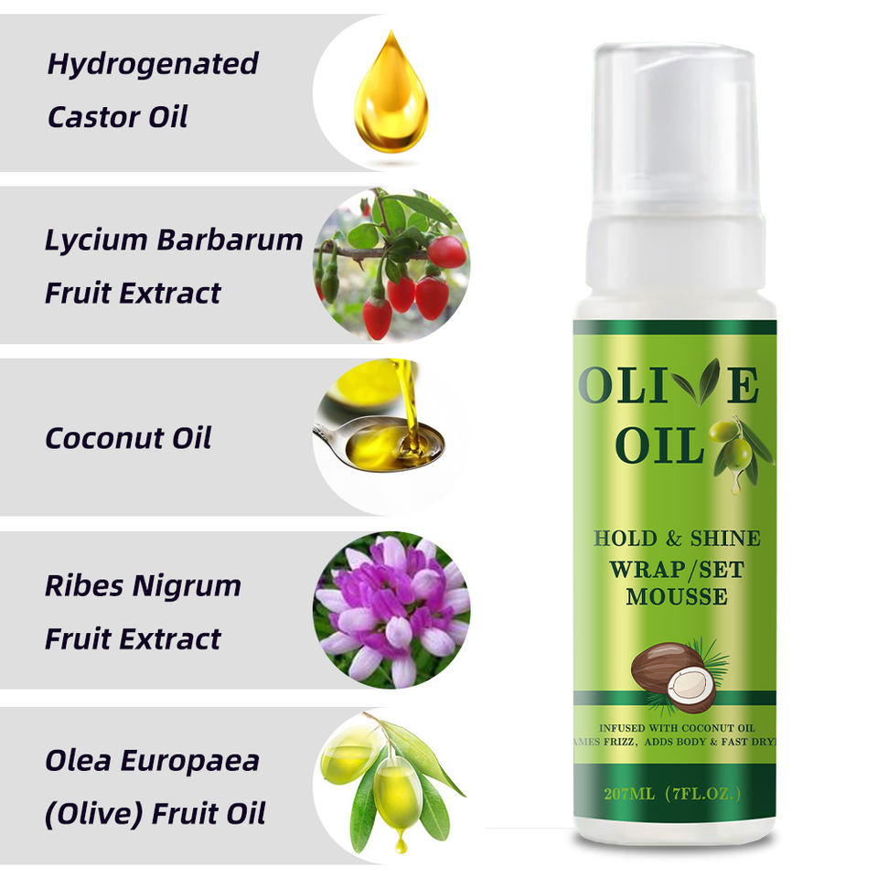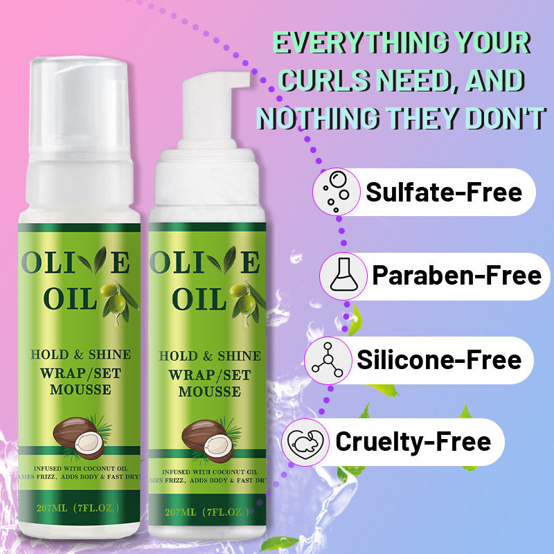 Ensemble de mousse coiffante à l'huile d'olive en marque propre, 7 OZ, lotion coiffante en mousse pour cheveux bouclés, perruque ou tissage