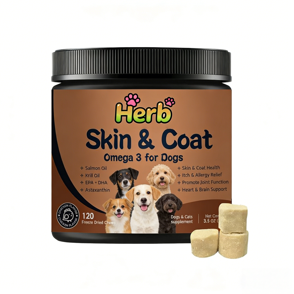 Compléments alimentaires à base d'huile de poisson oméga 3 6 9 en forme de friandises molles, marque privée, riches en EPA et DHA, vitamines C et E, soulagement des allergies, perte de poils, santé des chiens et des chats