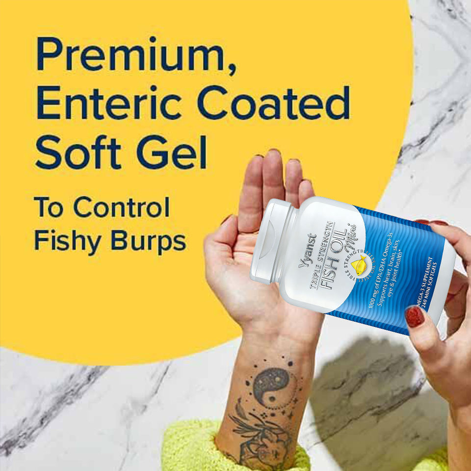 Capsules d'huile de poisson oméga-3 pour adultes en marque privée, triple force, faible teneur en glucides/sucres, 120 unités, emballage personnalisé