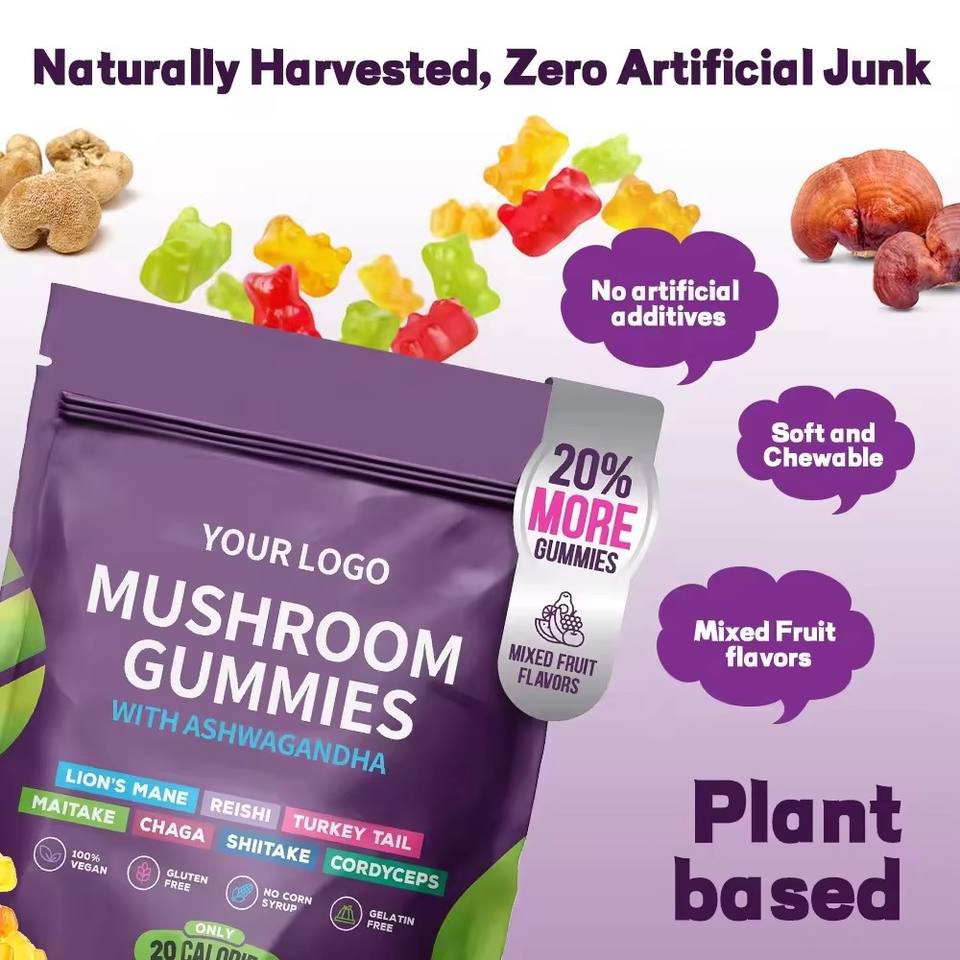 Complément Nootropique Biologique Marque Blanche pour le Cerveau : Extrait de Champignon Crinière de Lion, Stimulant Mémoire et Énergie, Gommes de Champignon Reishi