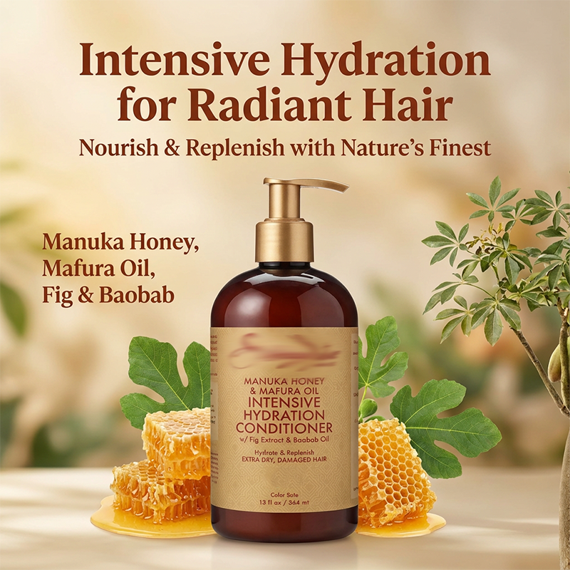 Crème hydratante pour cheveux bouclés africains sans sulfate à la grenade biologique de marque privée Miel de Manuka Huile de Mafura 2-en-1 pour cheveux