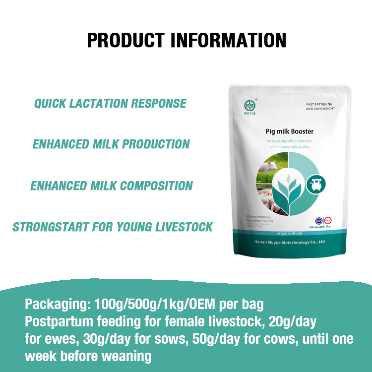 Additif alimentaire en poudre pour porcs sous marque privée, stimulant de lait maternel pour truies, améliore la qualité du lait, augmente la production de lait maternel chez les truies, bovins, paquet de 100g