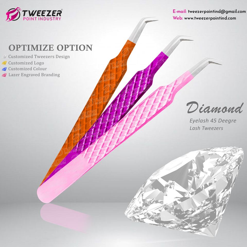 Pince à épiler à pointe de fibre de poignée de diamant de haute qualité 2D 3D 5D pince à épiler d'extension de cils avec Type de Volume de marque privée de couleur plasma