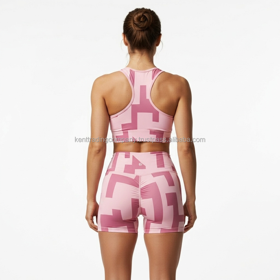 Ensemble de yoga uni grande taille sous marque privée, soutien-gorge de sport sublimé, short taille haute froncé aux fesses, respirant, séchage rapide, vêtements de sport OEM
