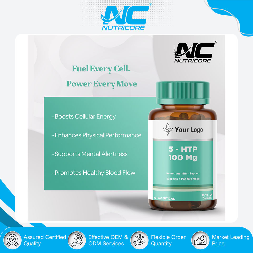 Compléments de santé à base de plantes de haute qualité sous marque privée, 5-HTP 100 mg en capsules, antioxydant pour hommes et femmes, durée de conservation de 24 mois