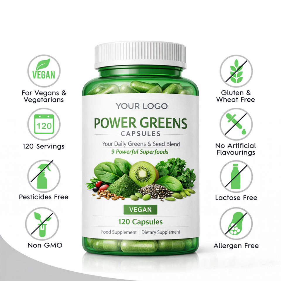 Capsules de Super Aliments Verts Marque Blanche – Mélange de 9 Super Aliments avec Soutien Antioxydant pour l'Énergie des Adultes