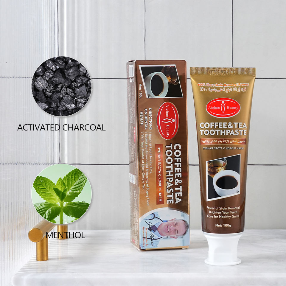 Dentifrice puissant anti-taches de marque privée, élimine les taches de café et de thé pour des dents brillantes et éclatantes, haleine fraîche