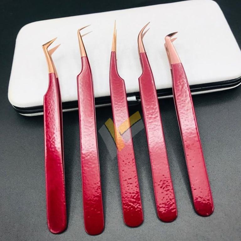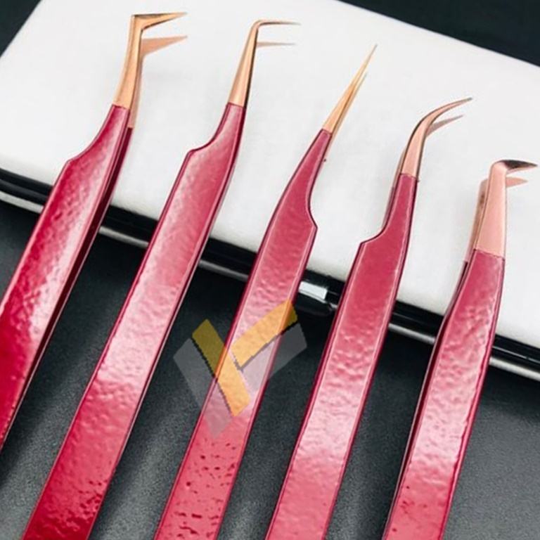 Pince à épiler pour extensions de cils en acier inoxydable rose doré de qualité supérieure, polyvalente, professionnelle, de marque privée, de qualité internationale