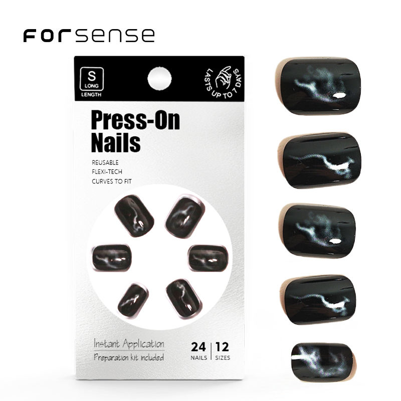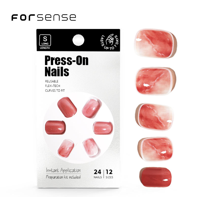 Jolie presse sur les ongles pour les femmes de marque privée faux ongles courts carrés en marbre rouge uni ombre spray couleur vin porter des bouts d'ongles