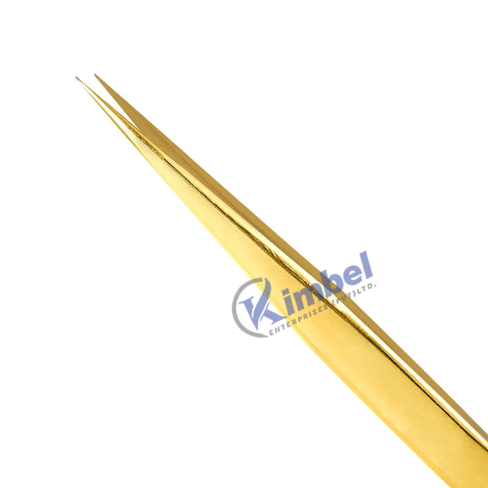 Pince à épiler incurvée pour extension de cils en forme de F à prise parfaite couleur or personnalisée professionnelle de marque privée