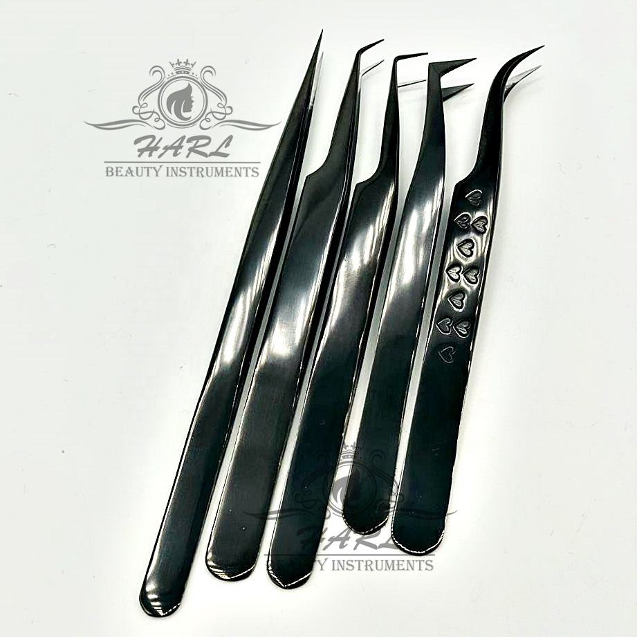 Pince à épiler professionnelle en acier inoxydable incurvée en forme de L pour extensions de cils, 45/90 degrés, volume russe, style