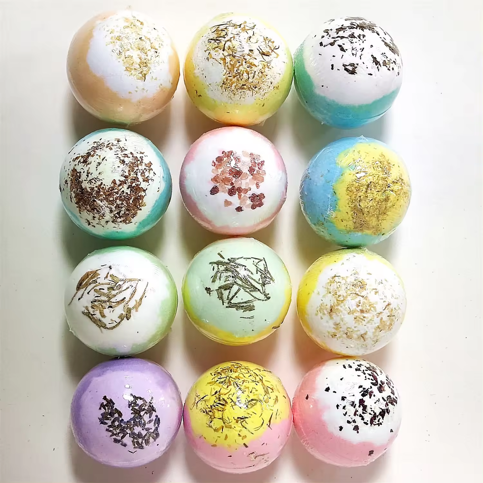 Marque privée Bombe de bain relaxante Boule de bain à fleurs végétaliennes Bombe de bain pétillante 12 Pcs Coffret cadeau pour hommes femmes