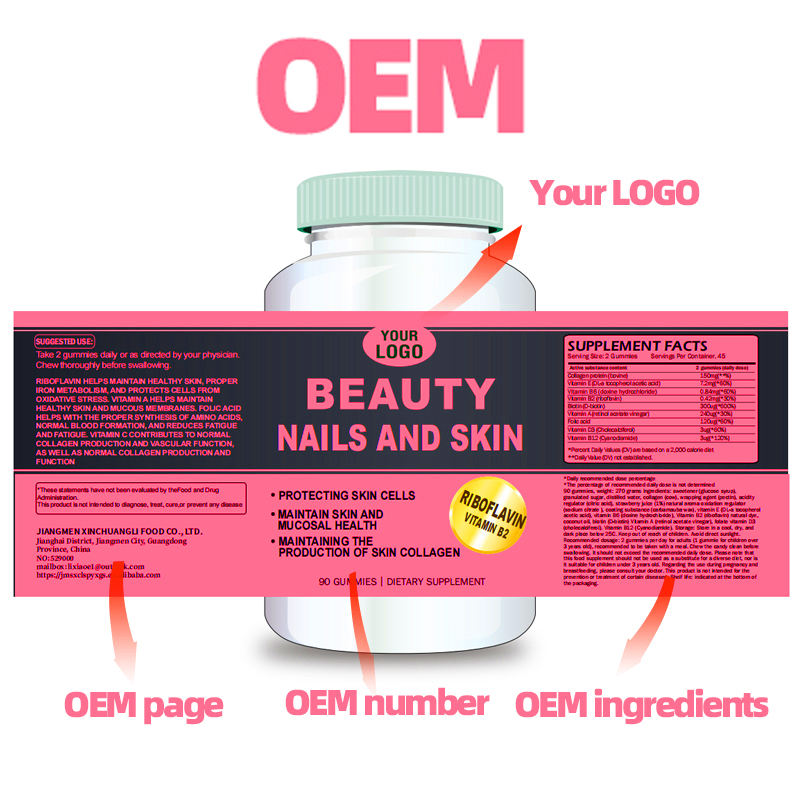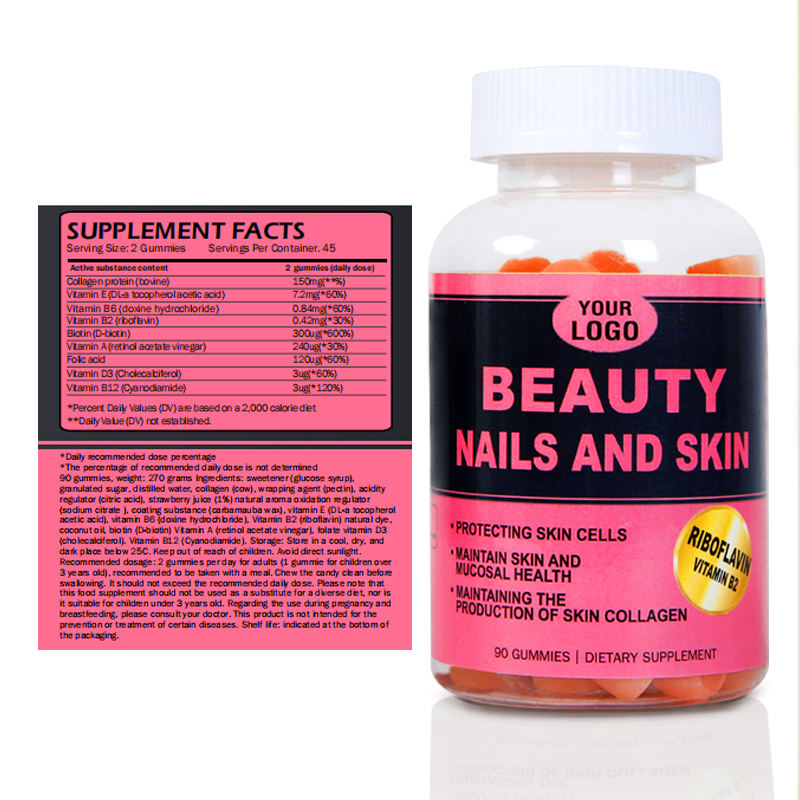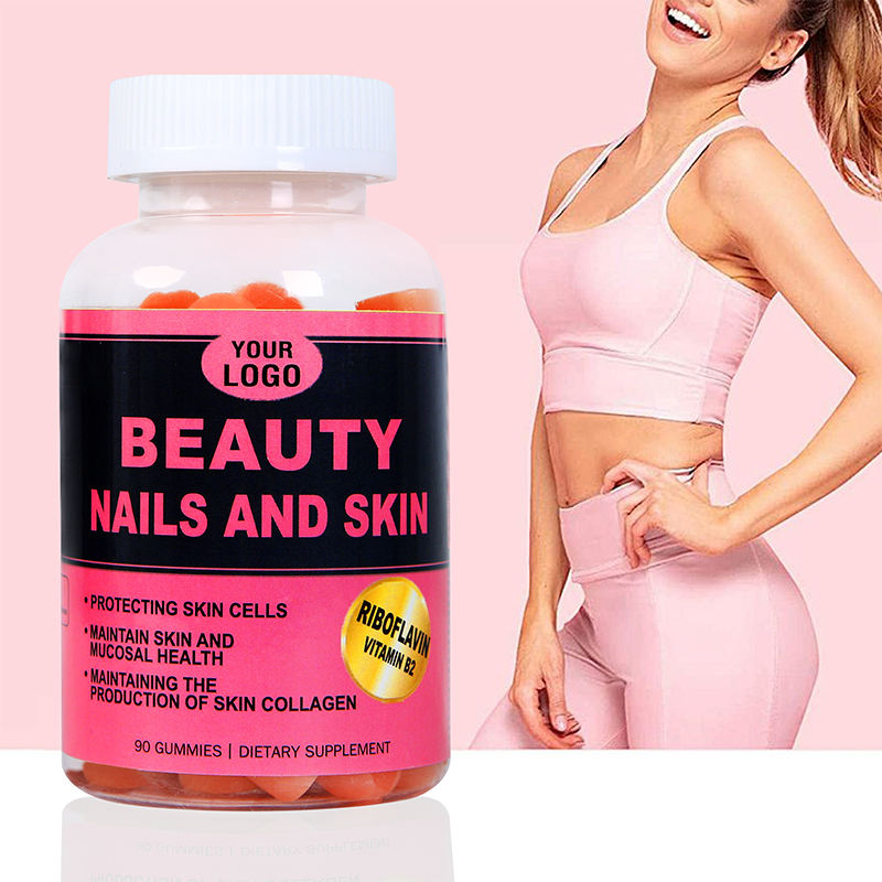 Marque privée Blanchiment de la peau Gommes anti-âge Plus de beauté et jeunes Marque personnalisée Fabricant de bonbons mous Ongles Cheveux Gomme lisse