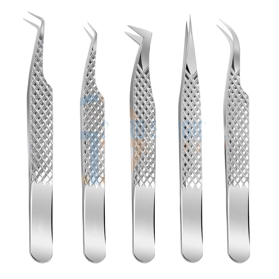 Pince à épiler d'extension de sourcils/cils à pointe inclinée de marque privée
