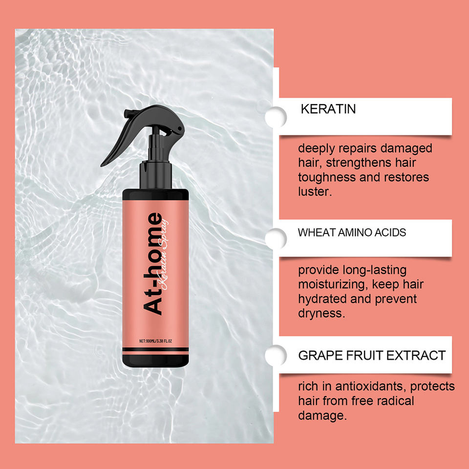 Spray de protection thermique à la kératine lisse et droite de marque privée pour la croissance des fibres capillaires Spray pour cheveux