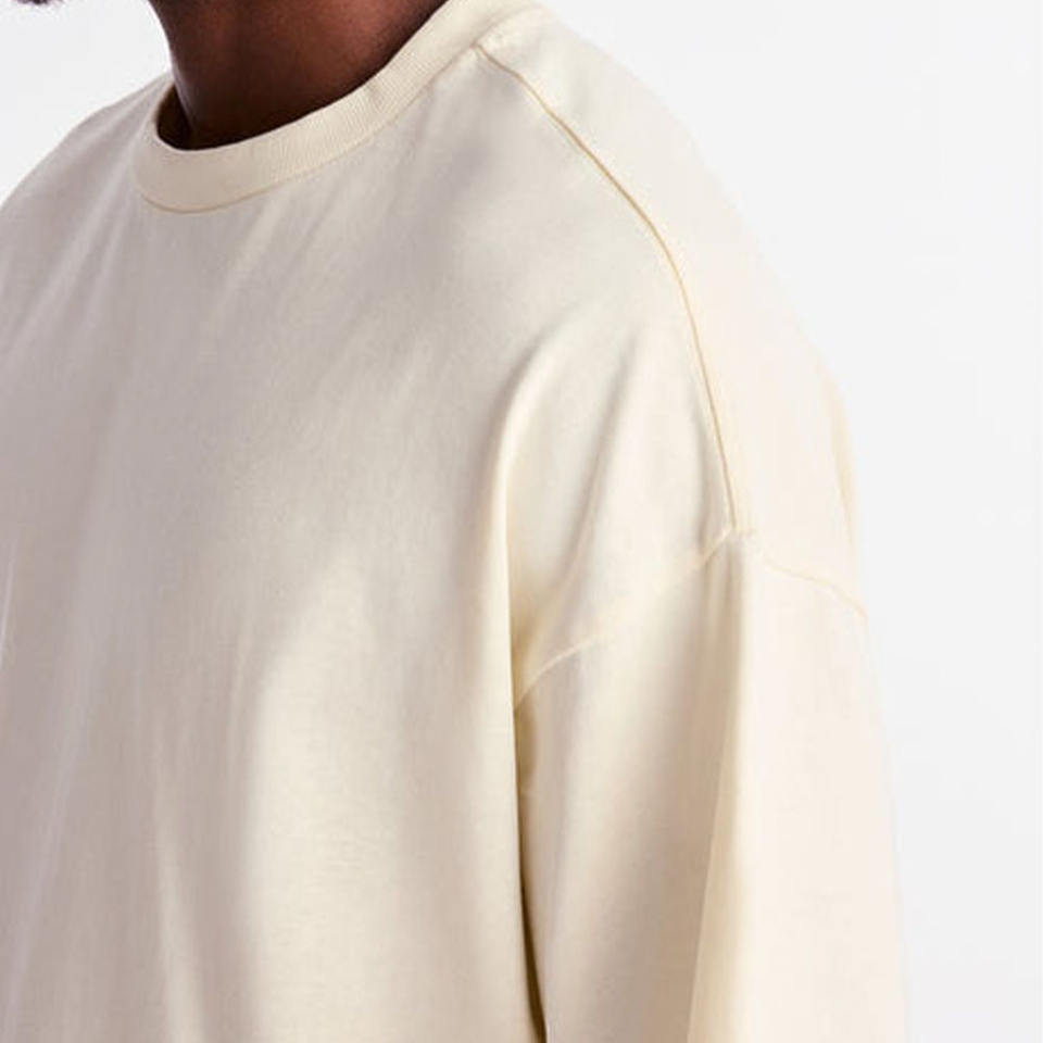 T-shirt en coton uni surdimensionné pour homme, col rond, épaules tombantes, style streetwear décontracté, marque privée, fournisseur OEM ODM personnalisé