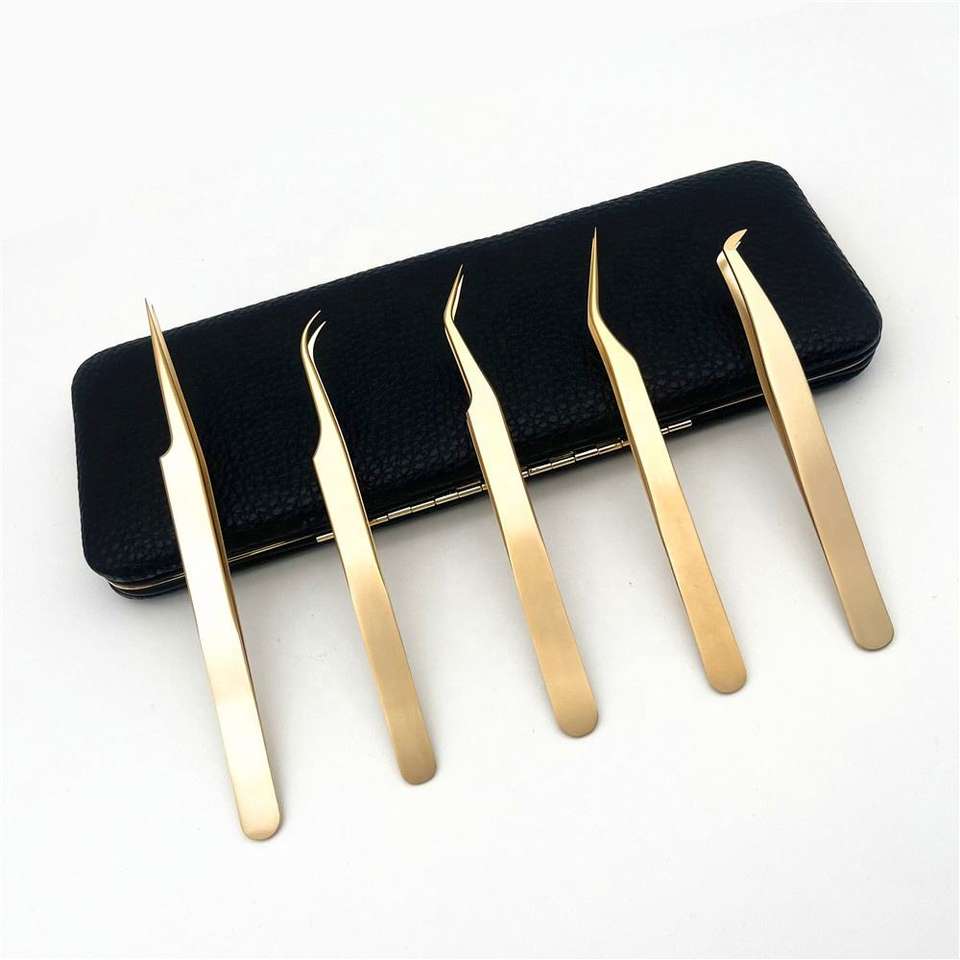Pince à épiler en acier inoxydable antistatique avec logo personnalisé, qualité A+, noire, rose, or, pince à épiler inclinée pour les sourcils