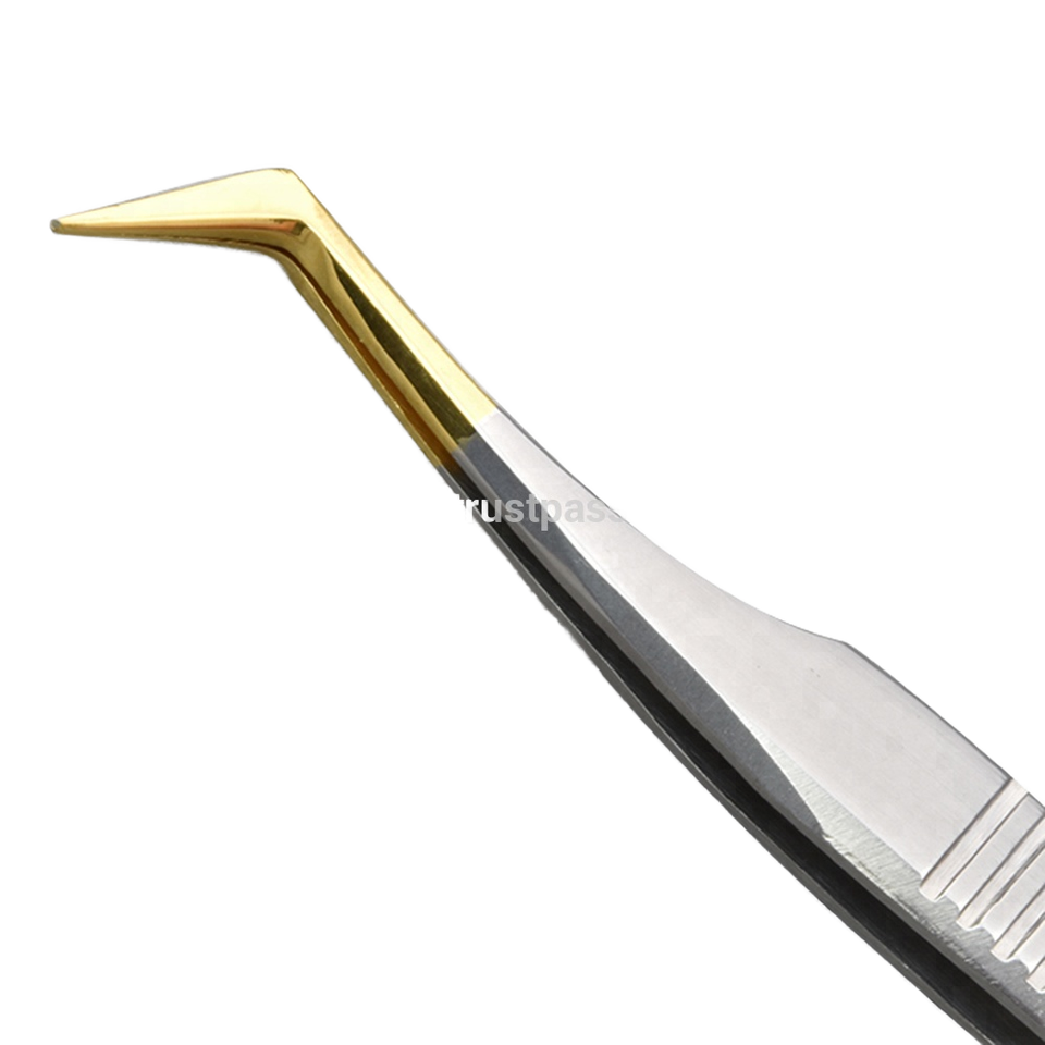 Private Label Stainless Steel Eyelash & Volume Lash Tweezers Gold with Pointed Tip