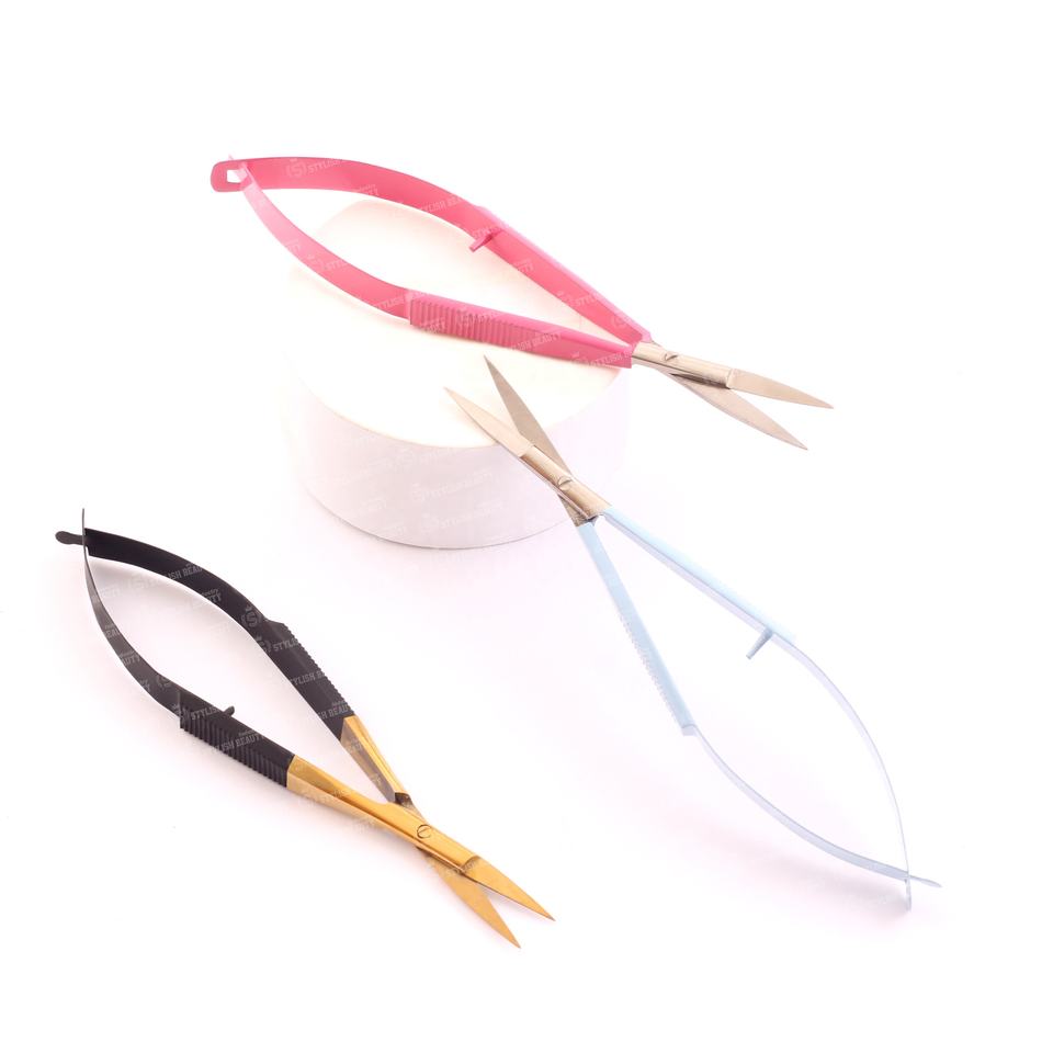 Ciseaux à ressort d'extension de cils de marque privée les plus vendus en acier inoxydable avec emballage de boîte de carte 1 pièce