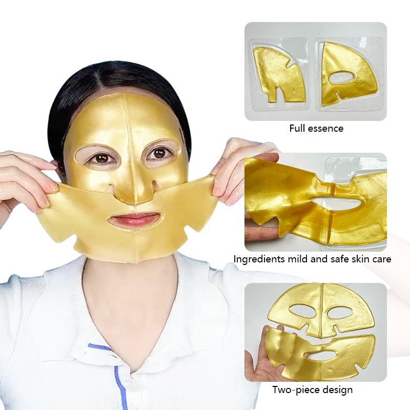 Private Label Two Piece 24K Gold Retinol Collagen Vitamin C Facial Mask Sheet Whitening Moisturizing Lifting Travel Size Beauty